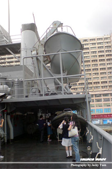 這天吃過中午飯後,在公司下的商場散步作休息時;看到碼頭旁所停泊的戰艦上很多遊人;