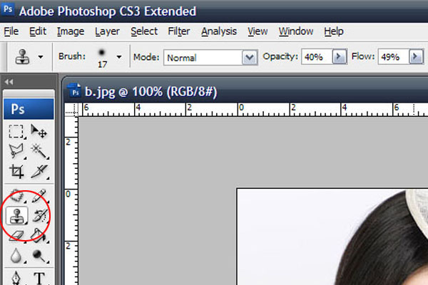 今次就使用這個 "印仔"(Clone Stamp Tool);平時,這個印仔都是用來複印某個位置的;