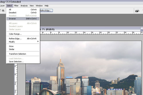 完成這個後,就把選擇的位置進行對調,變成選擇要矇矓的地方;(Select -> Inverse)