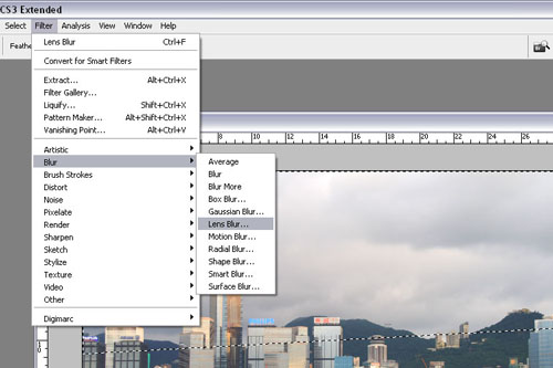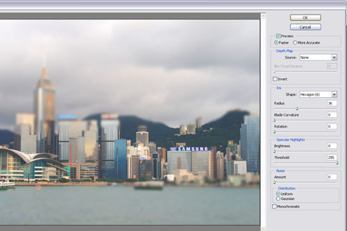 之後再選擇Filter -> Blur -> Lens Blur進行霧化;